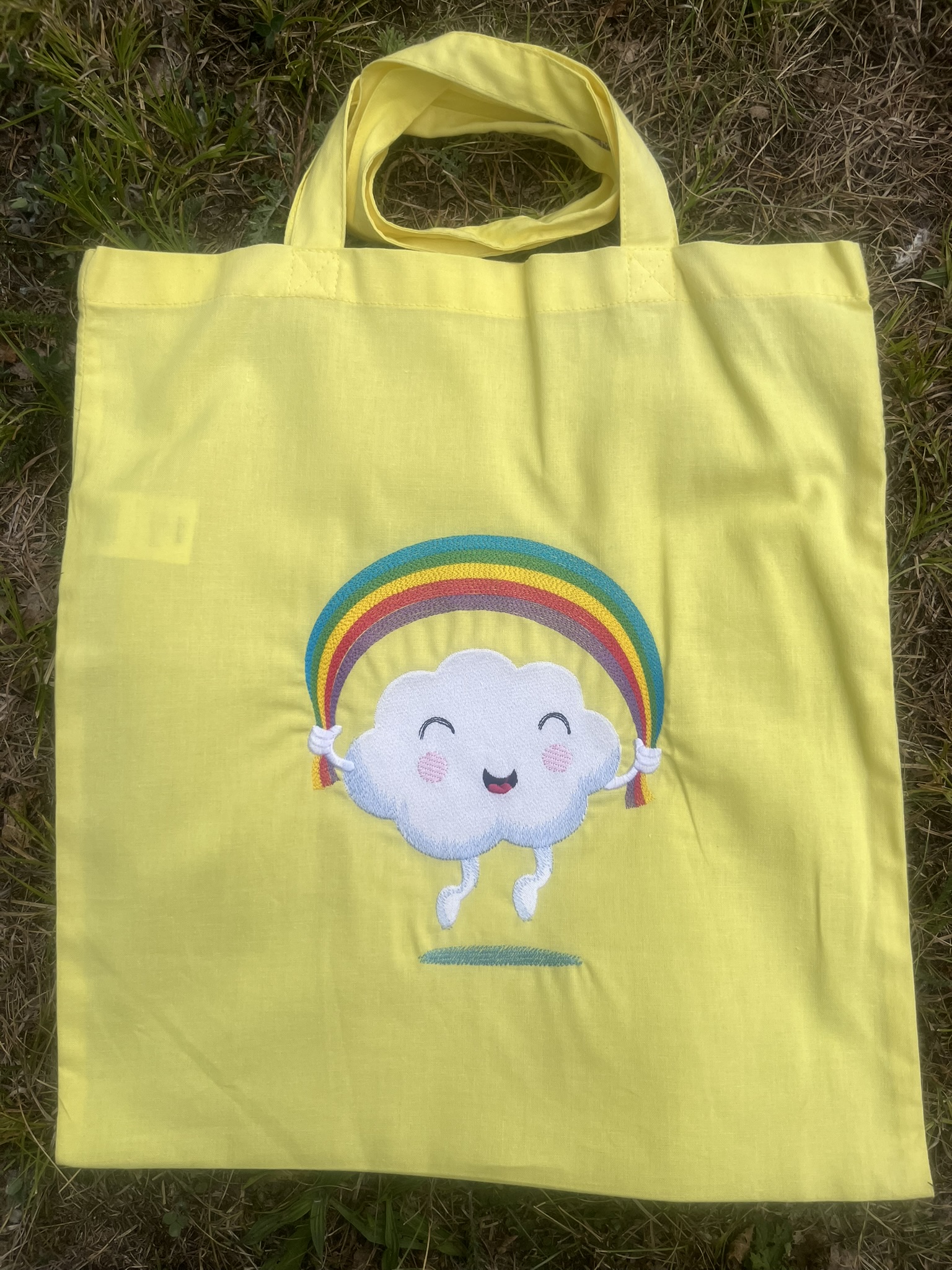 Choose this quirky design on any of our coloured bags (pictured on yellow).