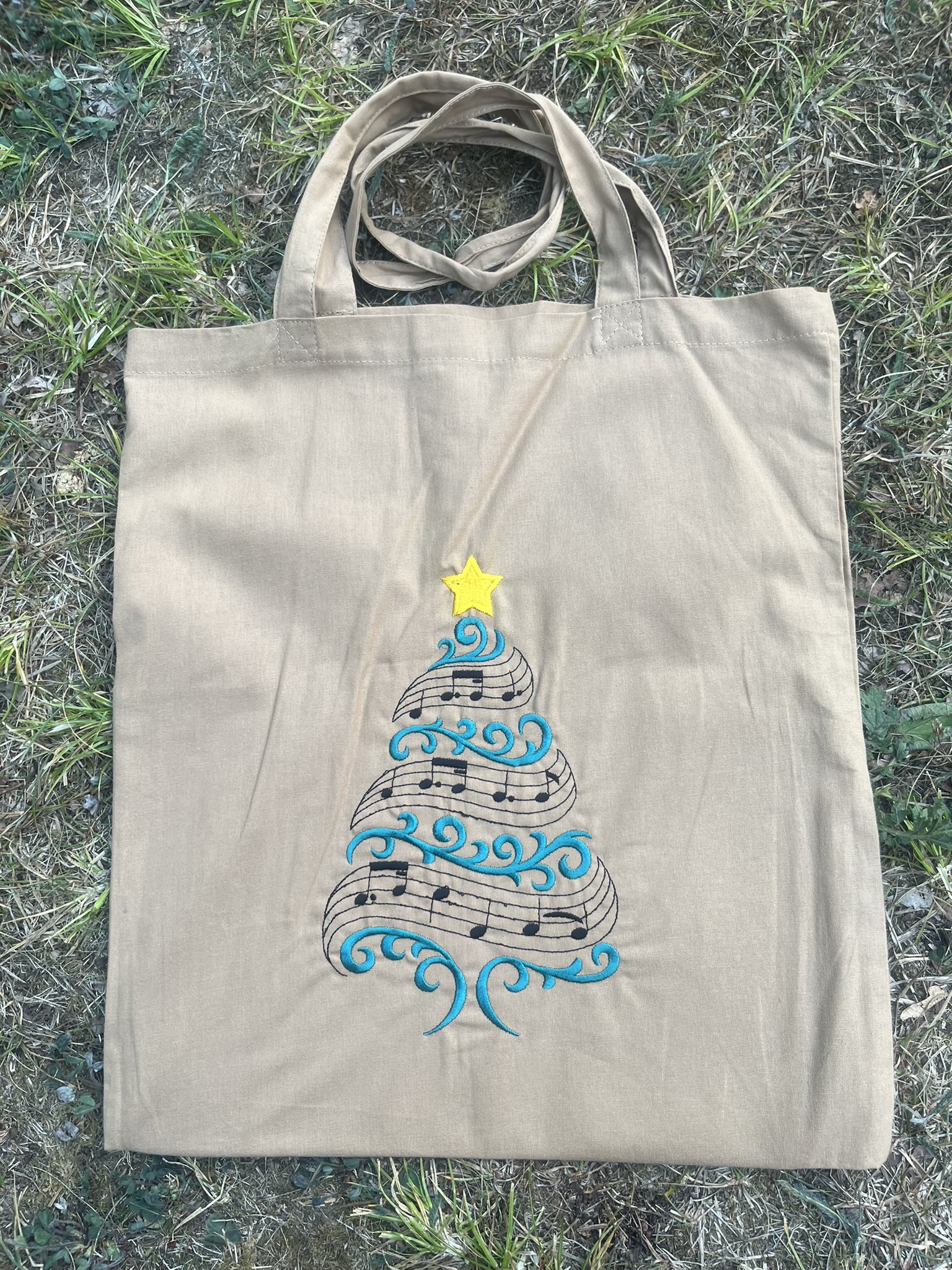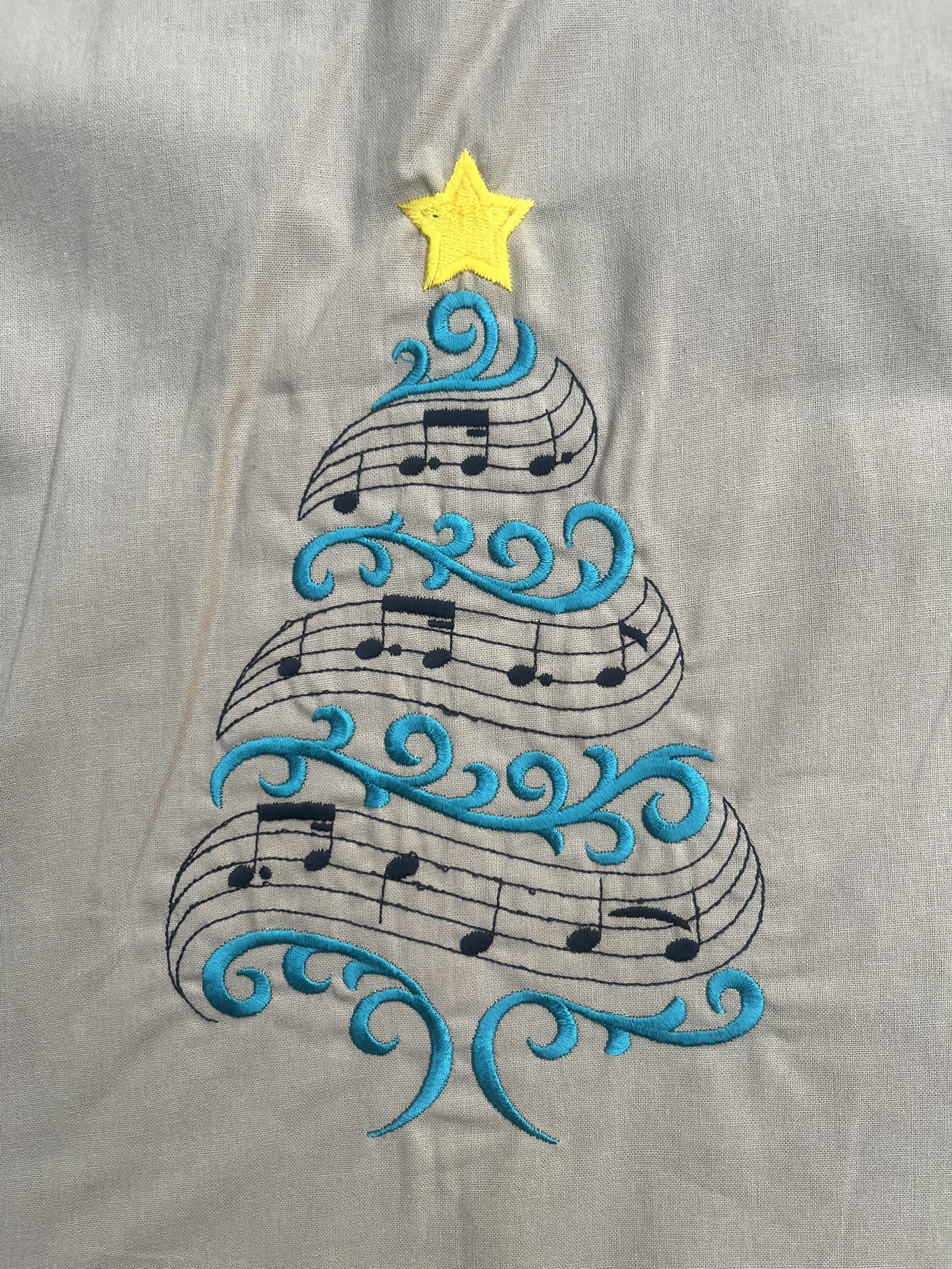The notes from 'O Christmas Tree' form this festive design.