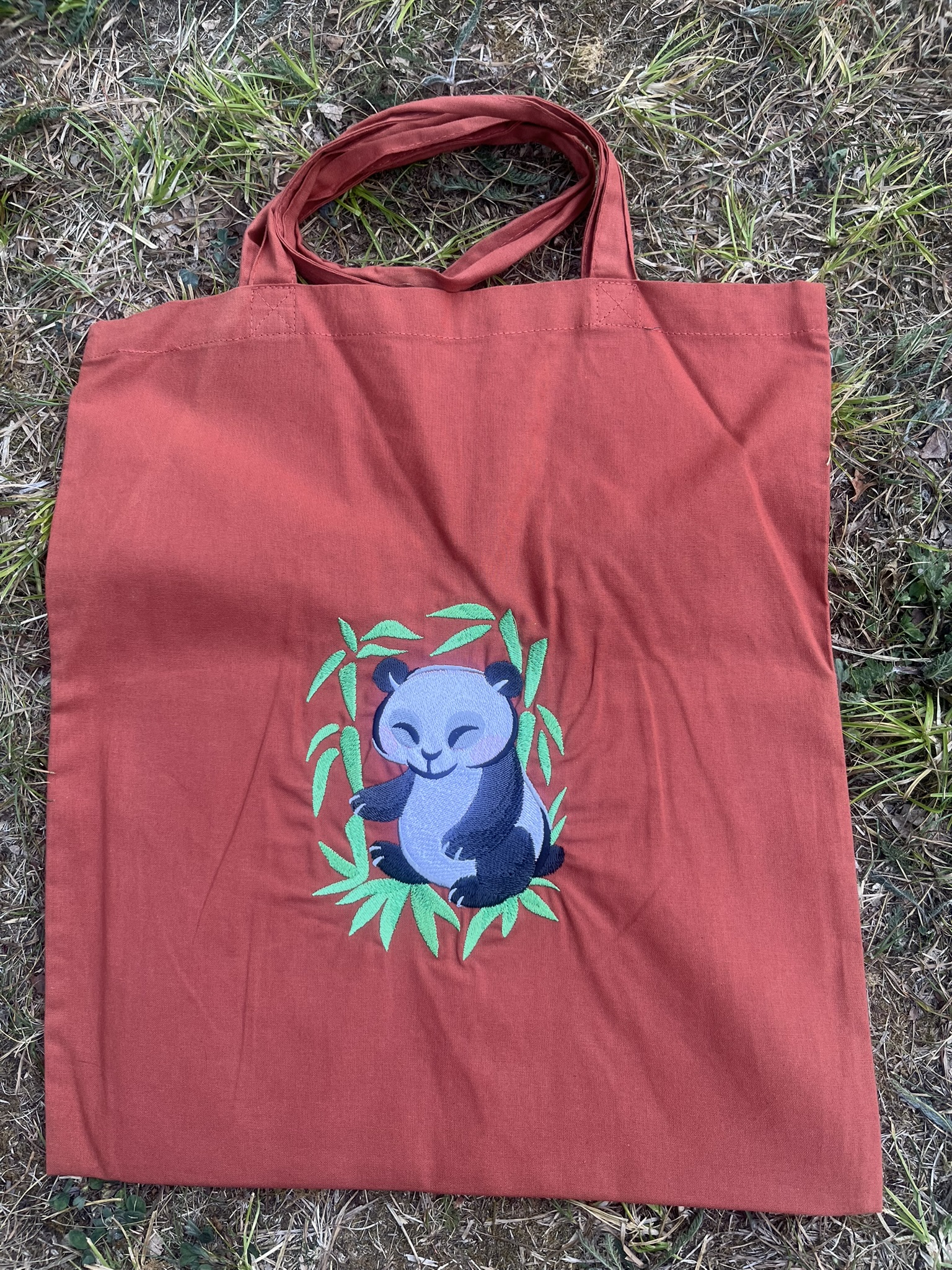 This Asian-inspired watercolour panda bear is a sweet and charming addition to any bag.
