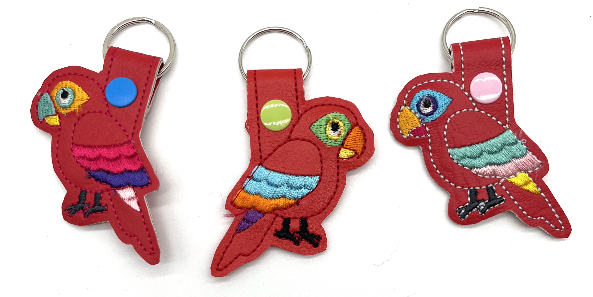 Faux leather embroidered keyfob, cut and assembled by hand.
