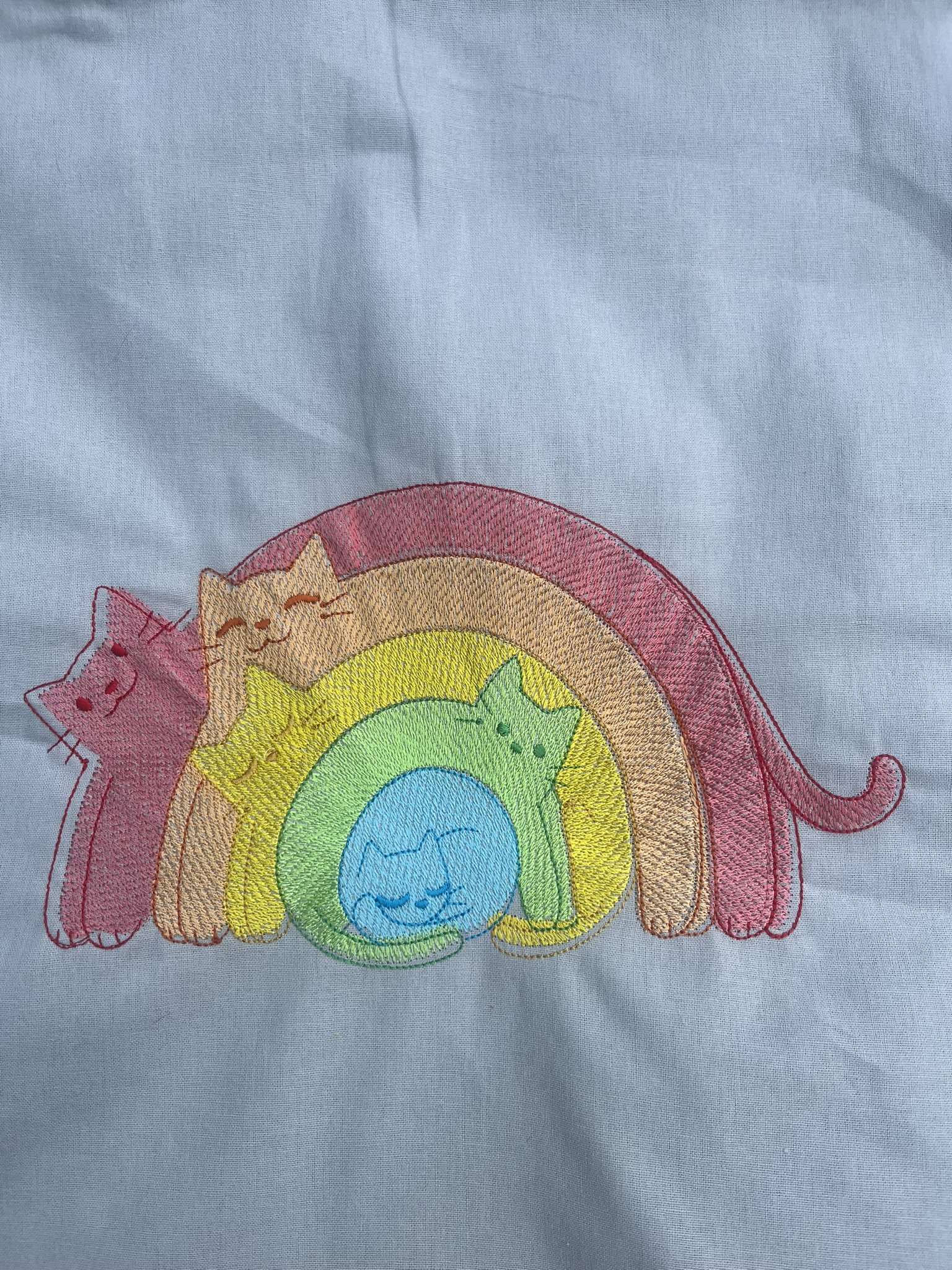 These playful kitties are doing their best full-body stretches — and looking absolutely meowgical while doing it! This bright and bold design features a lineup of long, lean rainbow cats full of personality.