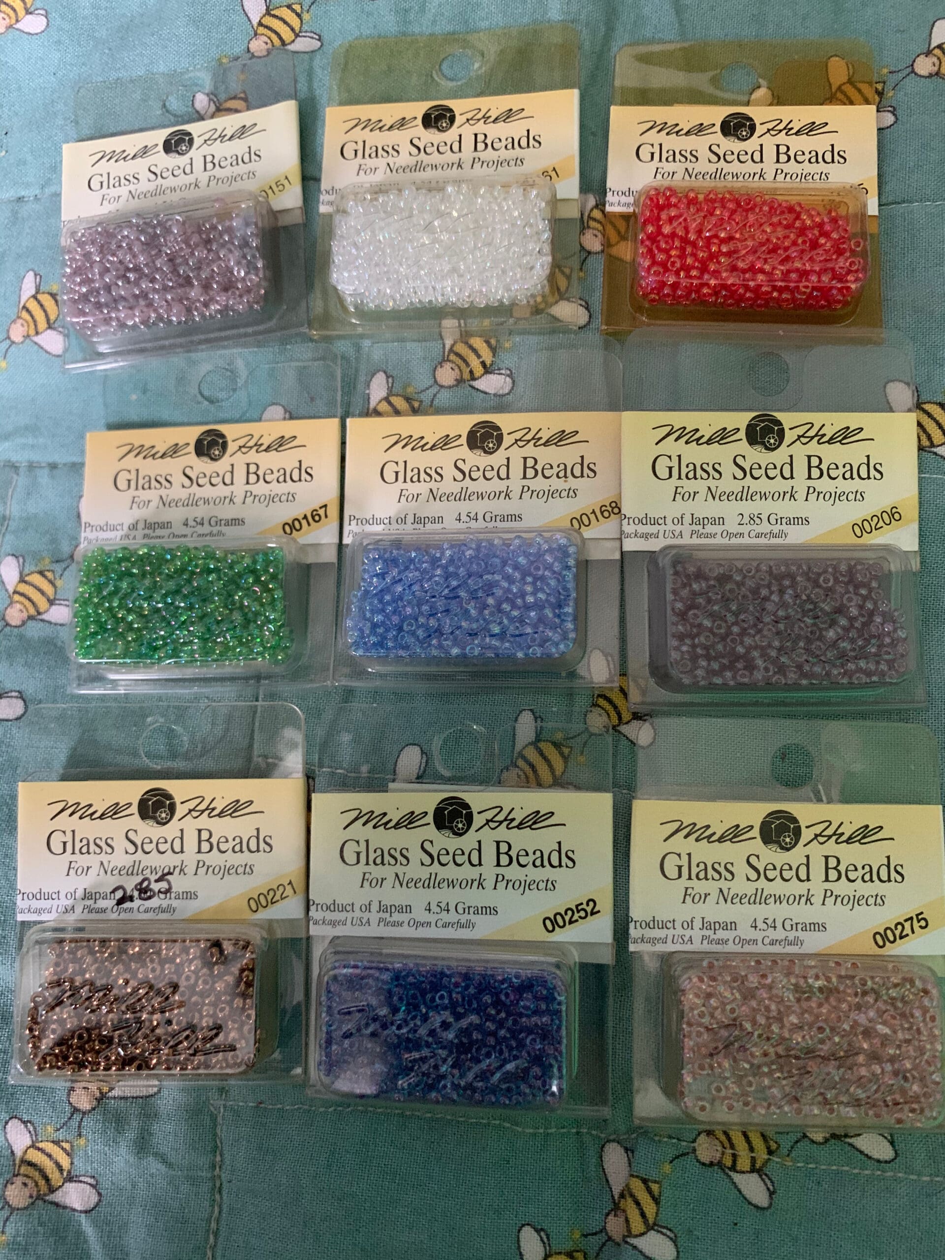 Beads are measured across at the widest point on the outside of the bead. Mill Hill Glass Seed Beads are 2.5 mm and size 11/0.