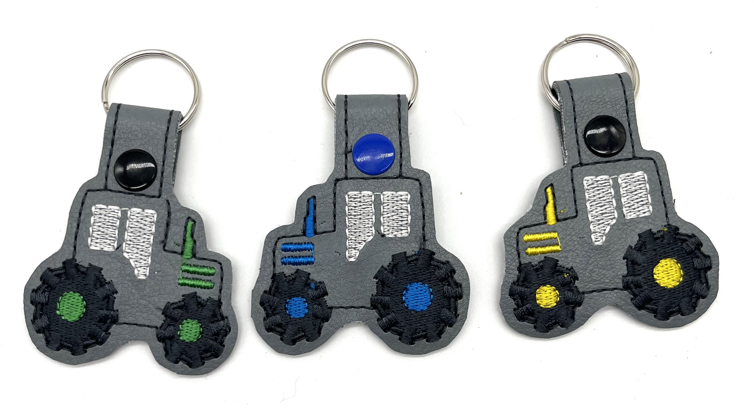 Faux leather embroidered keyfob, cut and assembled by hand.